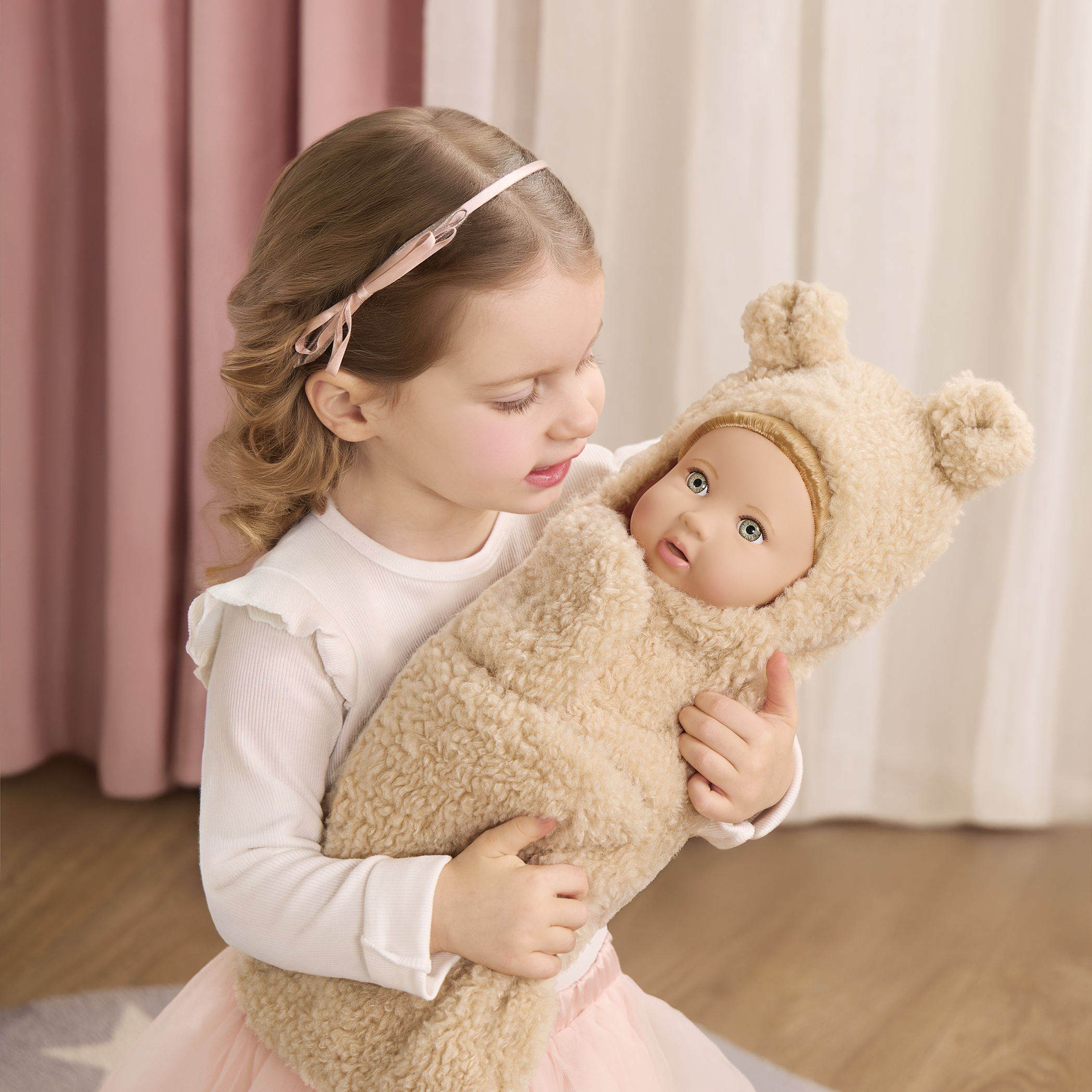 • Easy-Change Clothing: Baby doll comes dressed in sweet pajamas. Use the easy open closures to wrap baby in the ultra-soft, bear-themed cuddler for extra-cozy snuggles.
