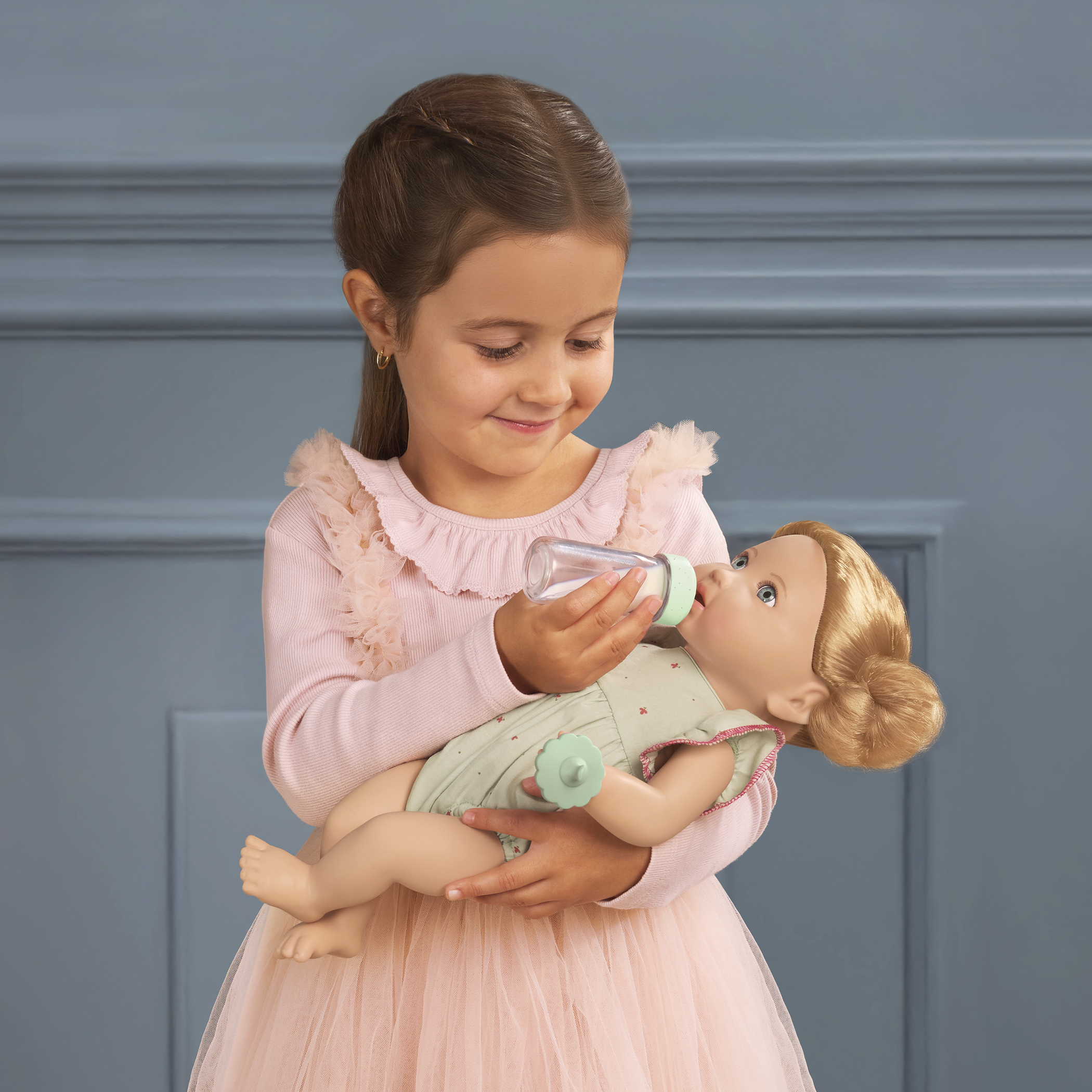 From mealtime to travel time and beyond, little ones can nurture their baby doll with a stylish collection of realistic accessories.